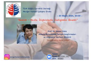 Hekim – Hasta İlişkisinde İletişimin Önemi 20 Mayıs 2024 – 20.00 Zoom Toplantısı Toplantı Kimliği: 844 8980 1083 Şifre: 893683